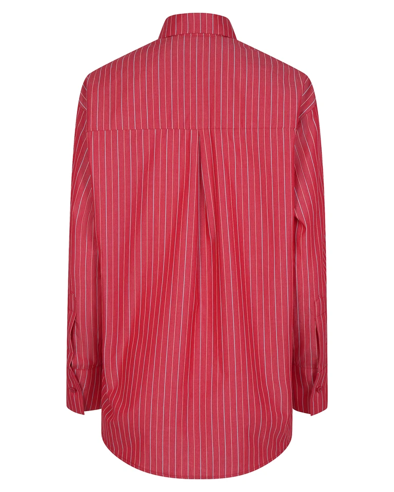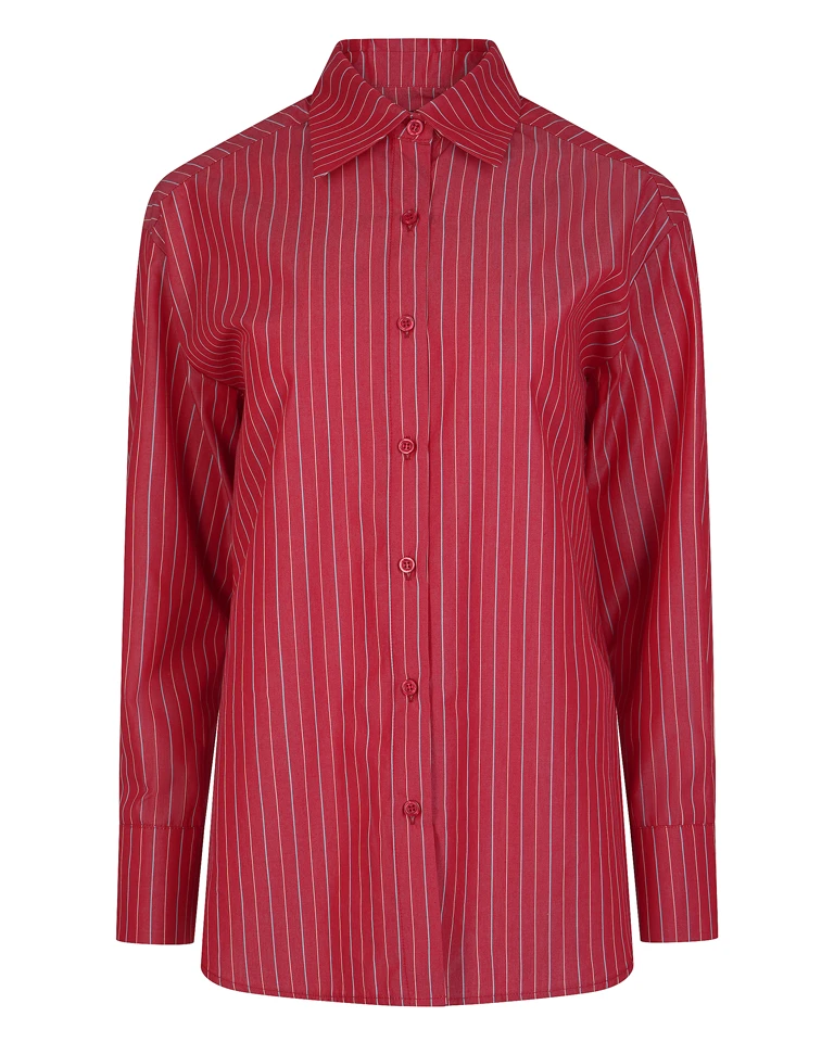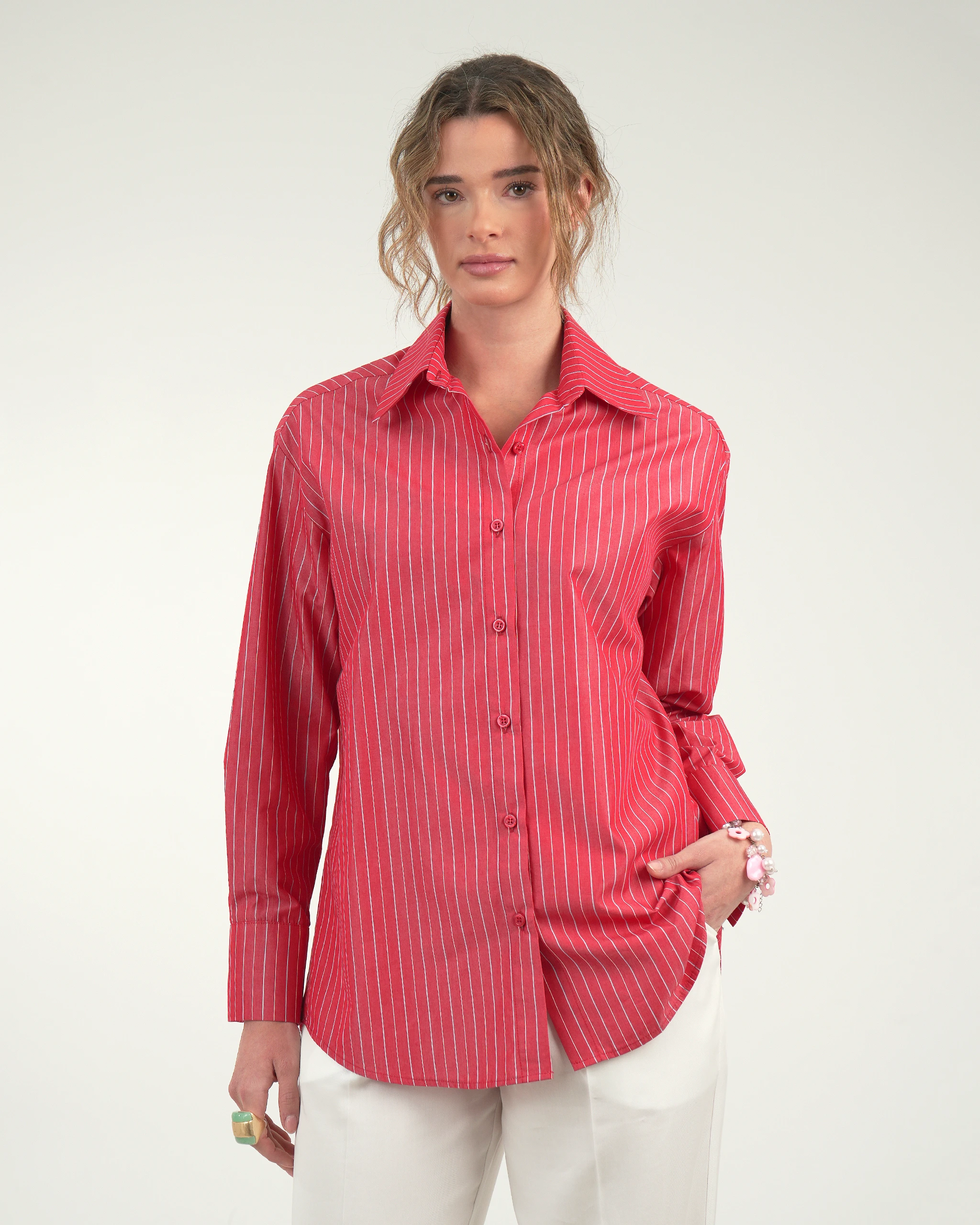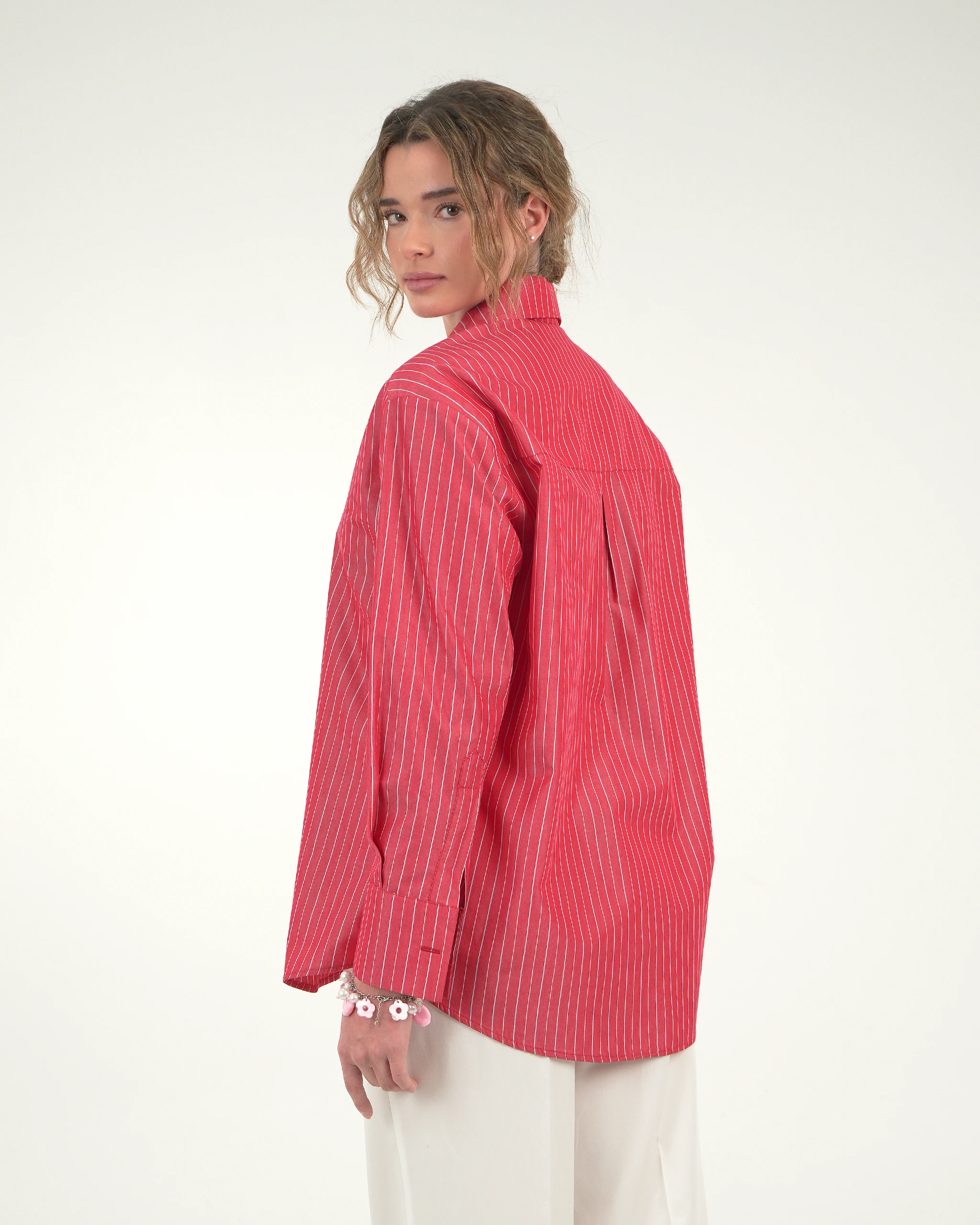 Το AMARENA STRIPED SHIRT είναι ένα statement πουκάμισο που συνδυάζει έντονο χρώμα με κλασικό pattern. Οι σιέλ και λευκές ρίγες δημιουργούν ένα ιδιαίτερο contrast πάνω στη ζωντανή κόκκινη βάση, χαρίζοντας μοντέρνο και δυναμικό χαρακτήρα. Η χαλαρή γραμμή του το κάνει ιδανικό για άνετα καθημερινά looks, ενώ μπορεί να φορεθεί είτε κλειστό είτε ανοιχτό πάνω από tops για πιο relaxed styling.