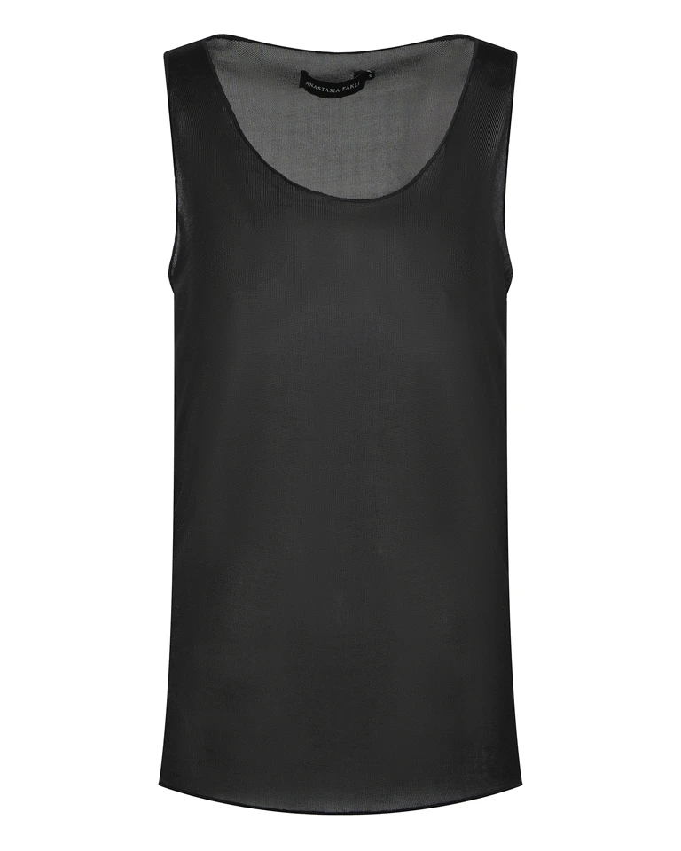 Minimal top με διακριτική διαφάνεια στο ντεκολτέ και απαλή εφαρμογή.