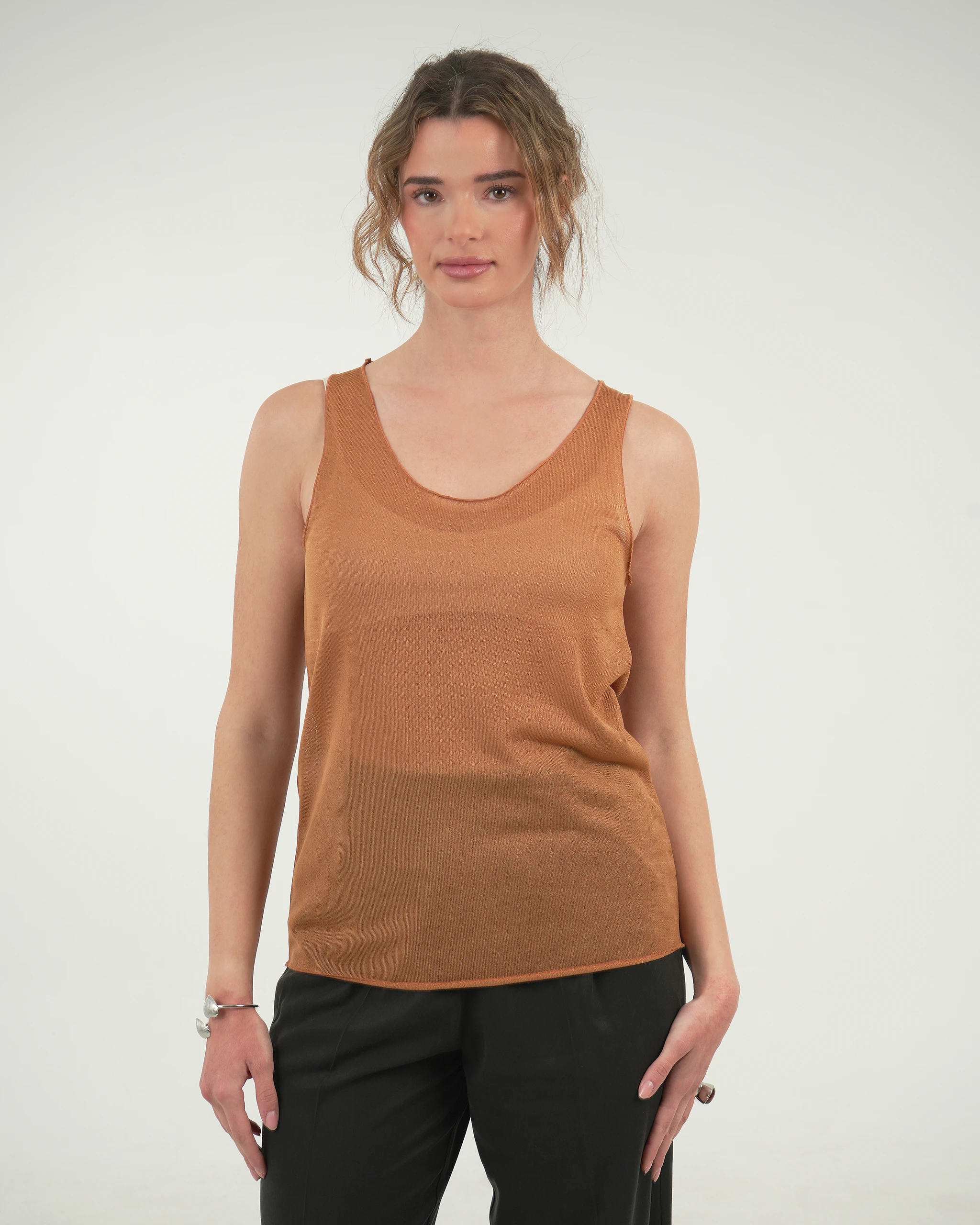 Το ARIA TOP σε caramel απόχρωση είναι ένα κομψό και minimal κομμάτι που αγκαλιάζει το σώμα με φυσικό τρόπο. Η ελαφριά υφή του υφάσματος και η διακριτική διαφάνεια στο ντεκολτέ δημιουργούν μια φίνα και θηλυκή αισθητική. Ένα ευέλικτο top που φοριέται εύκολα μόνο του ή σε layering, από το πρωί μέχρι το βράδυ.