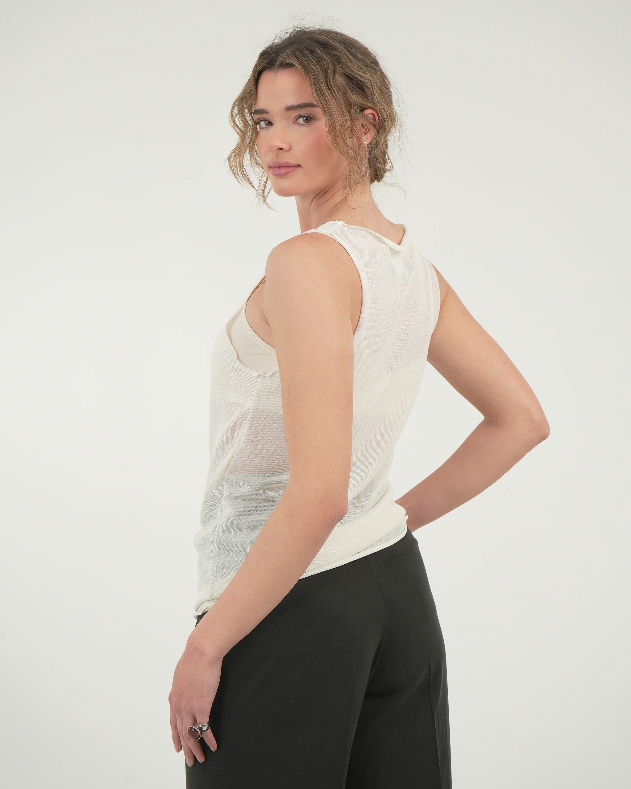 Το ARIA TOP σε λευκή απόχρωση είναι ένα κομψό και minimal κομμάτι που αγκαλιάζει το σώμα με φυσικό τρόπο. Η ελαφριά υφή του υφάσματος και η διακριτική διαφάνεια στο ντεκολτέ δημιουργούν μια φίνα και θηλυκή αισθητική. Ένα ευέλικτο top που φοριέται εύκολα μόνο του ή σε layering, από το πρωί μέχρι το βράδυ.