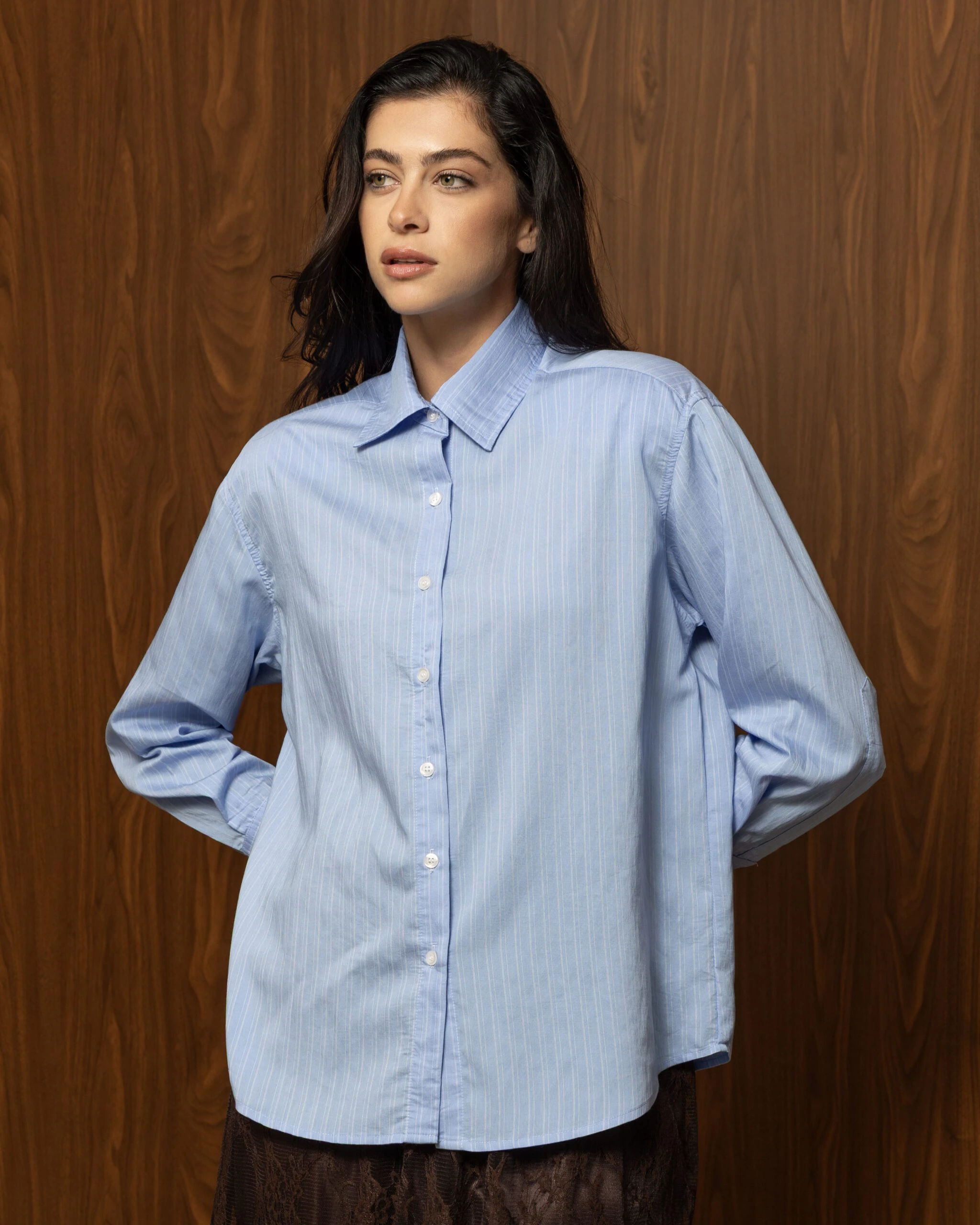 BLUE HOUR SHIRT – Γαλάζιο ριγέ πουκάμισο με ανδρόγυνο χαρακτήρα
