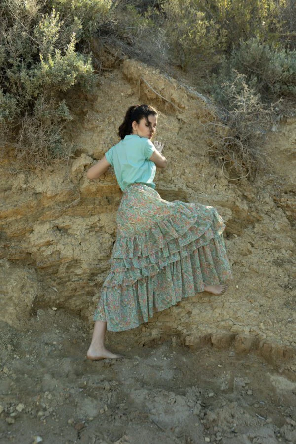 Η Daydream Skirt είναι μια μάξι φούστα με βολάν και πολύχρωμο paisley print που χορεύει με κάθε σου κίνηση.