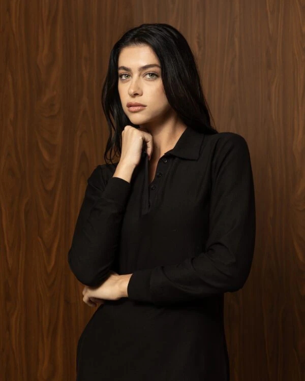 - Μακρύ μανίκι με κομψό γιακά και κουμπιά μπροστά