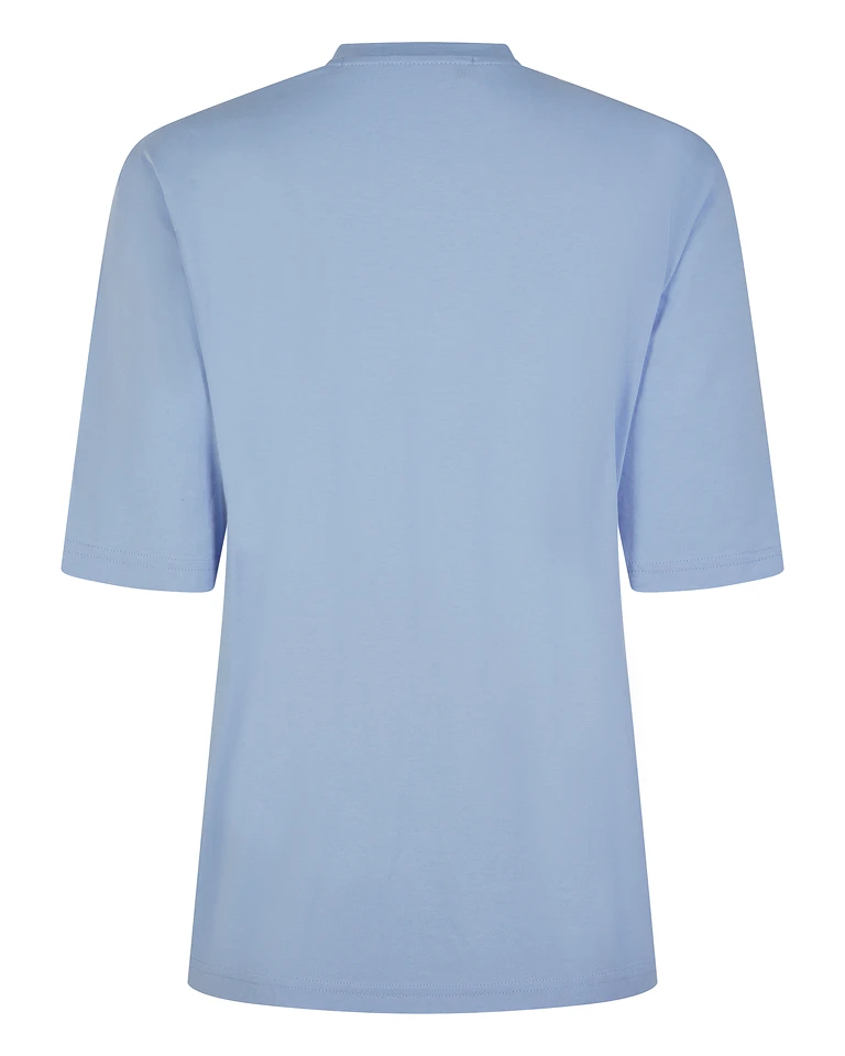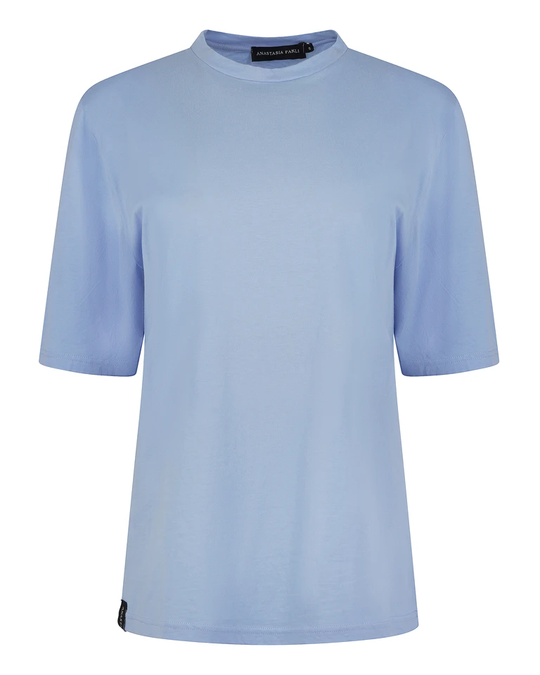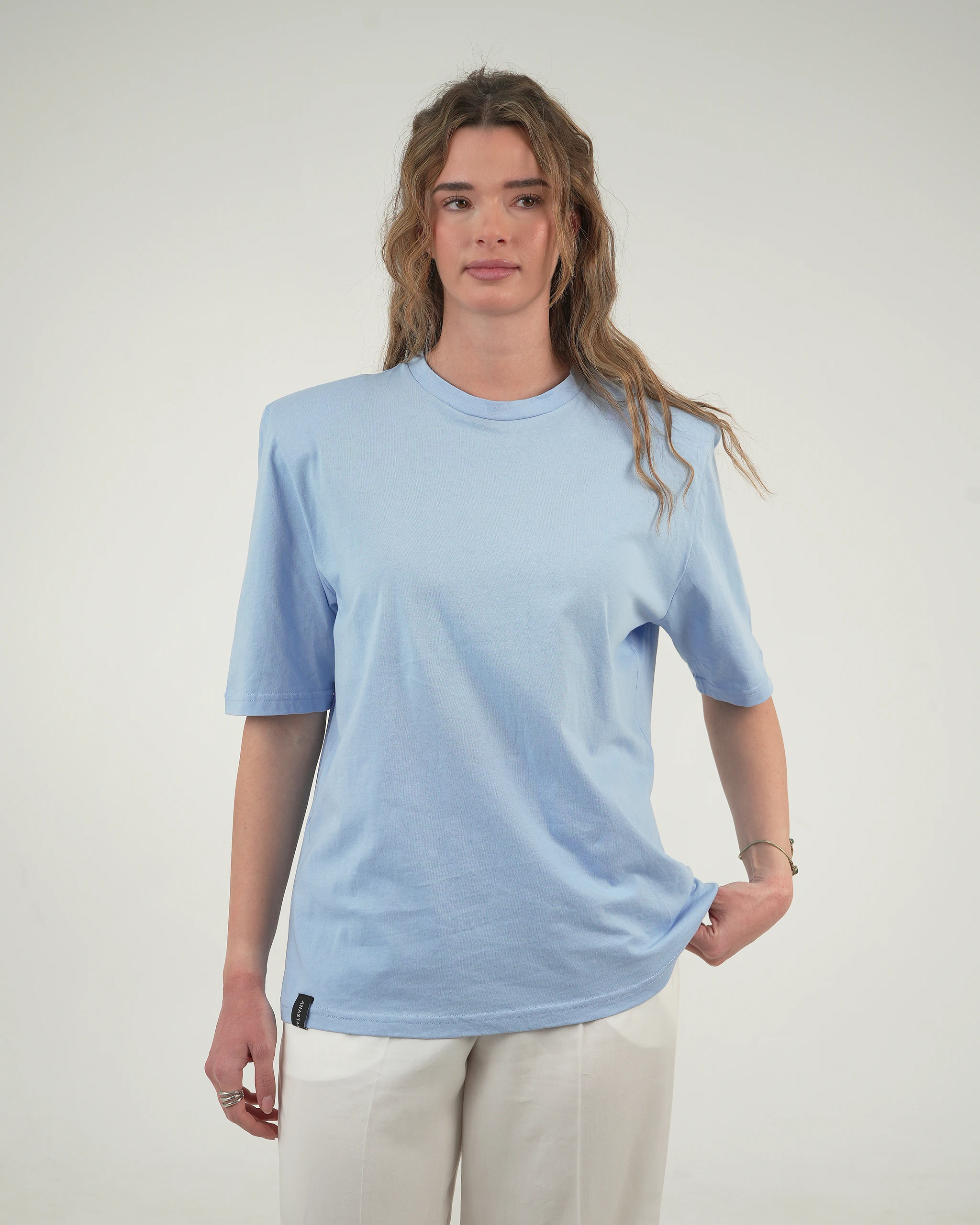 Sky blue T-shirt από 100% βαμβάκι με βάτες στους ώμους και relaxed γραμμή για clean και δυναμικό look.