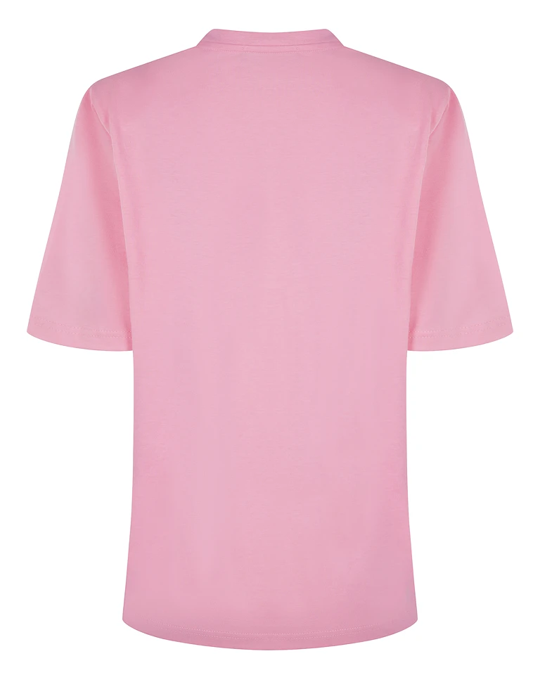 Soft pink T-shirt από 100% βαμβάκι με βάτες στους ώμους και relaxed γραμμή για σύγχρονη, δυναμική σιλουέτα.