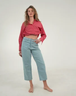 Light blue denim από 100% βαμβάκι με relaxed γραμμή και εσωτερικό ρυθμιζόμενο λάστιχο στη μέση για απόλυτο έλεγχο στο fit.