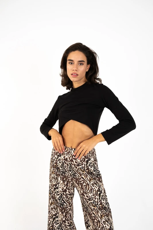 Μακρυμάνικο crop top σε μαύρο χρώμα με ασύμμετρο τελείωμα. Ένα must have top για classy και κομψές εμφανίσεις κατάλληλο για όλες τις περιστάσεις.