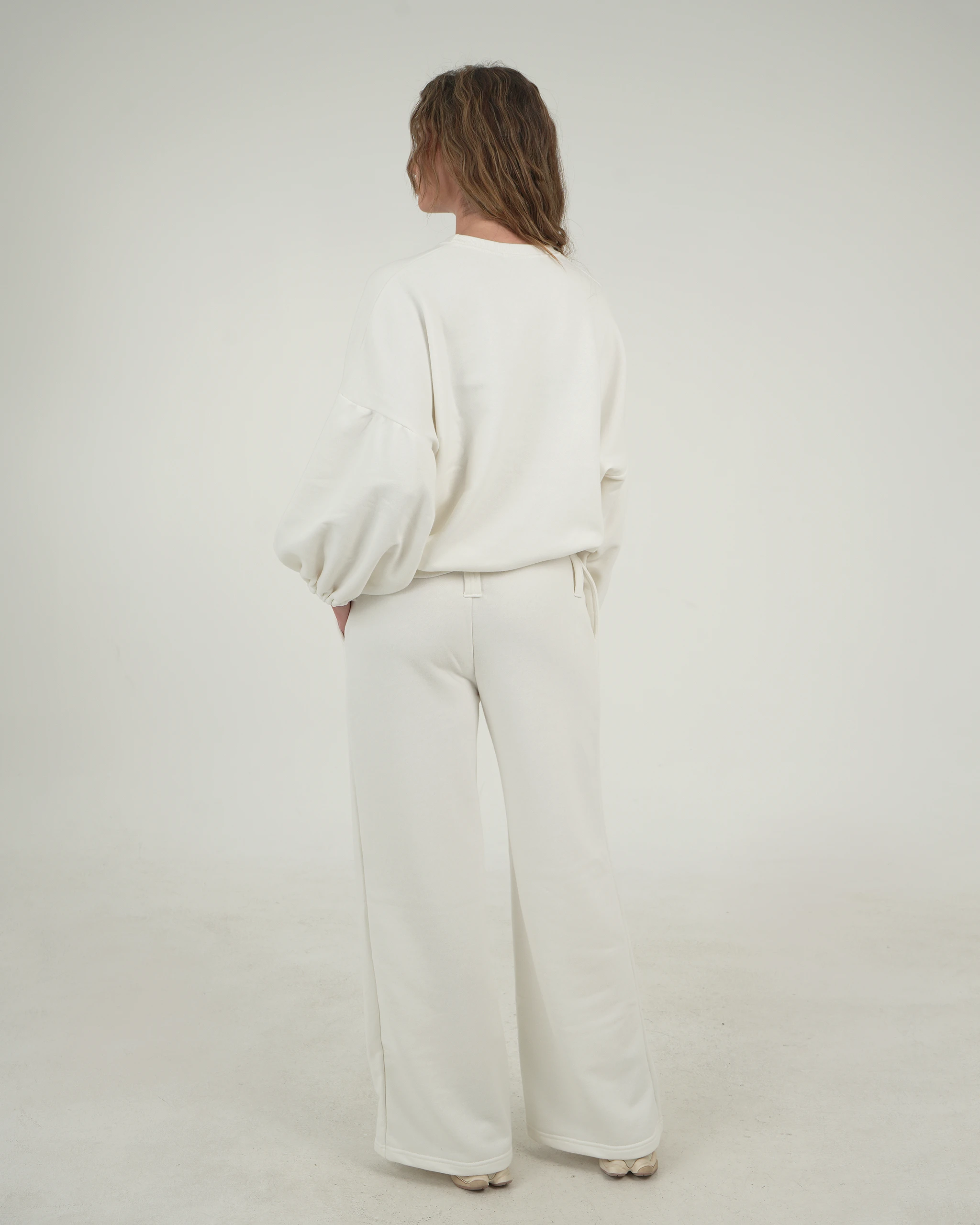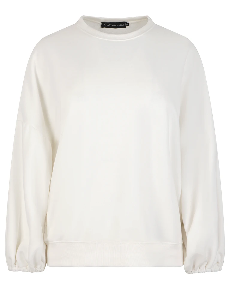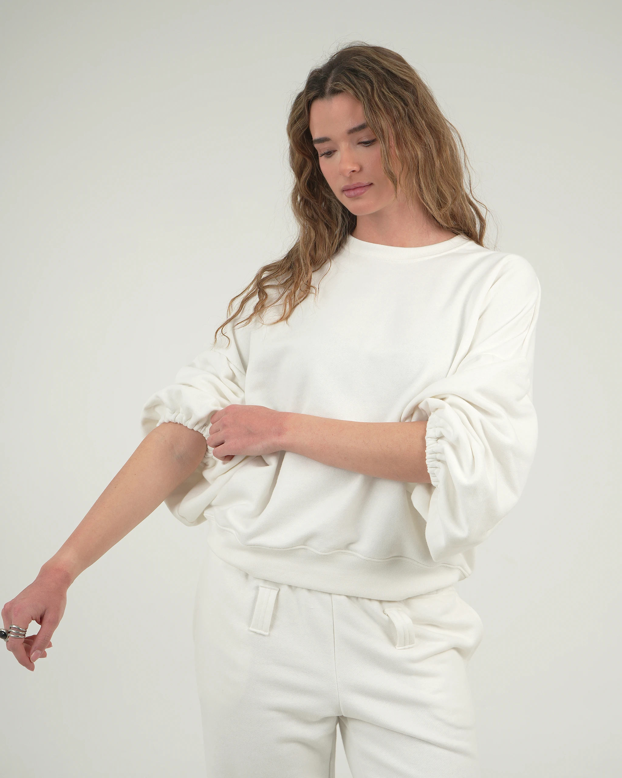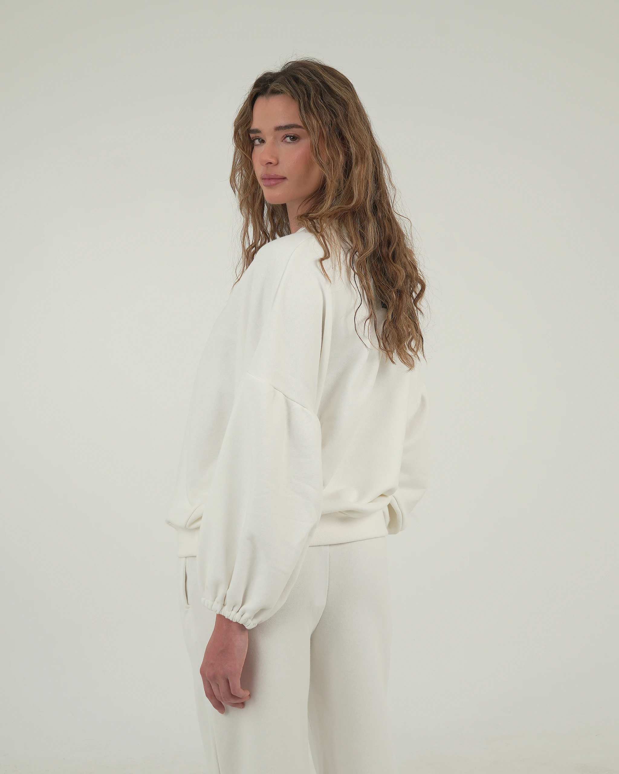 Minimal sweatshirt σε off-white από απαλό βαμβακερό ύφασμα, με relaxed γραμμή και λάστιχο στα μανίκια για άνετο και σύγχρονο fit.