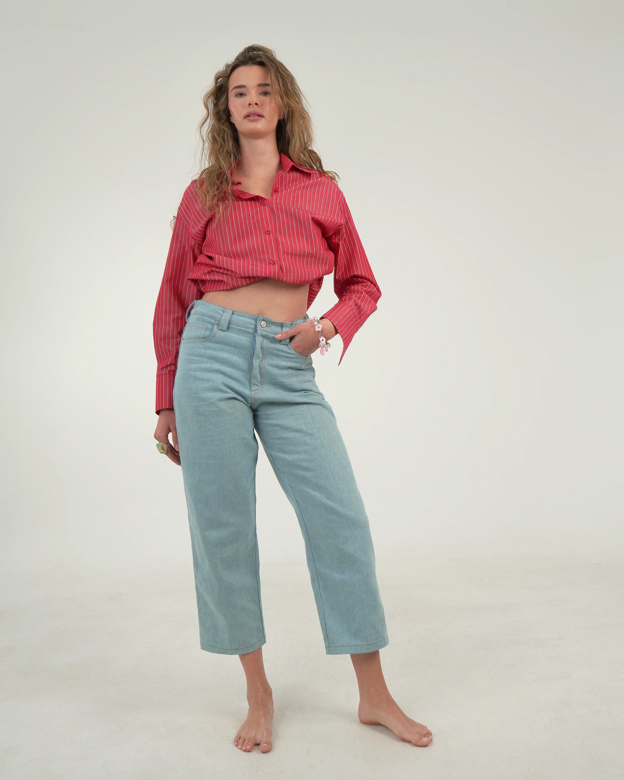 Blue Jean σε φαρδιά γραμμή. Προσφέρει άνεση και στύλ , ενώ η χαλαρή εφαρμογή του αγκαλιάζει το σώμα χωρίς να