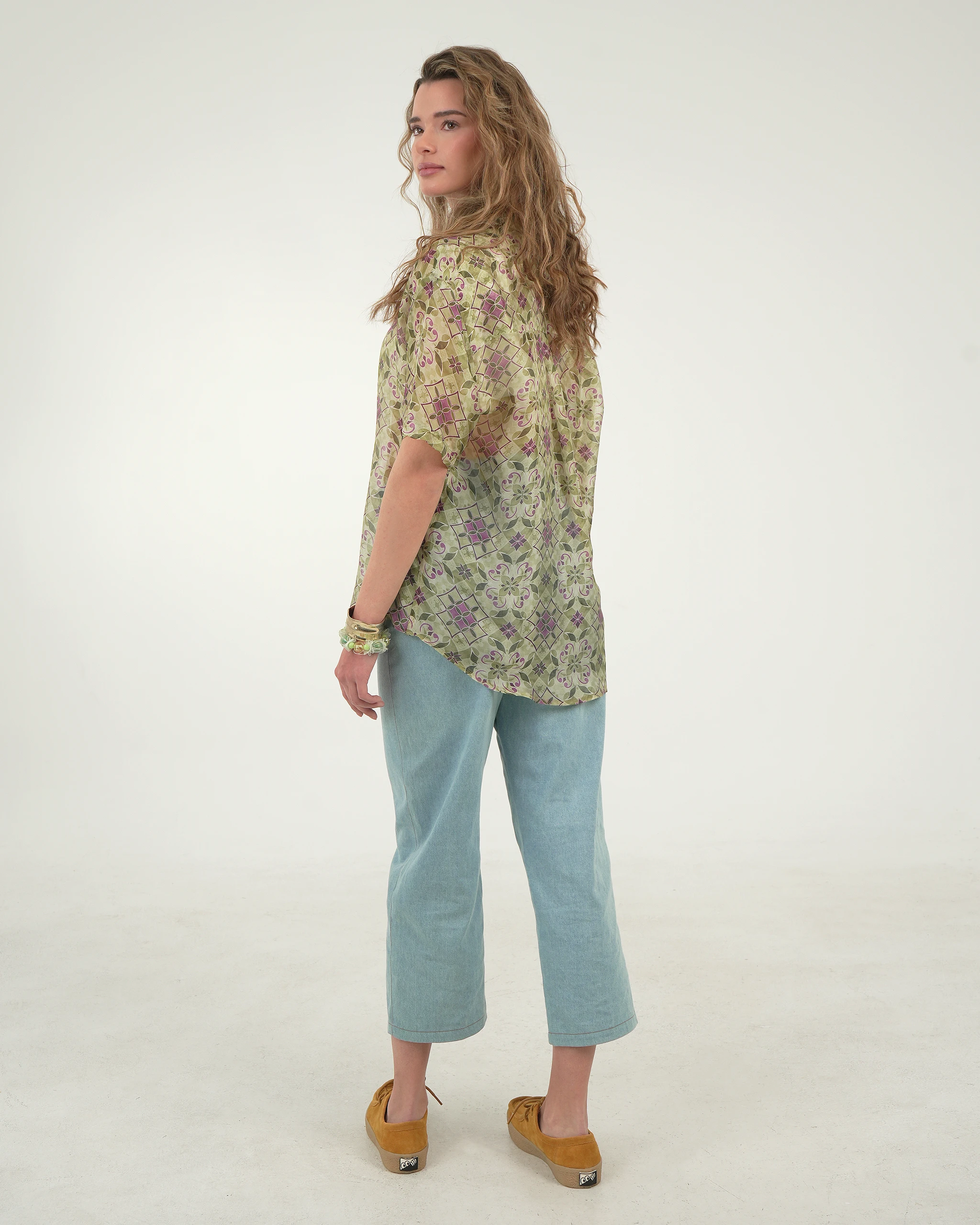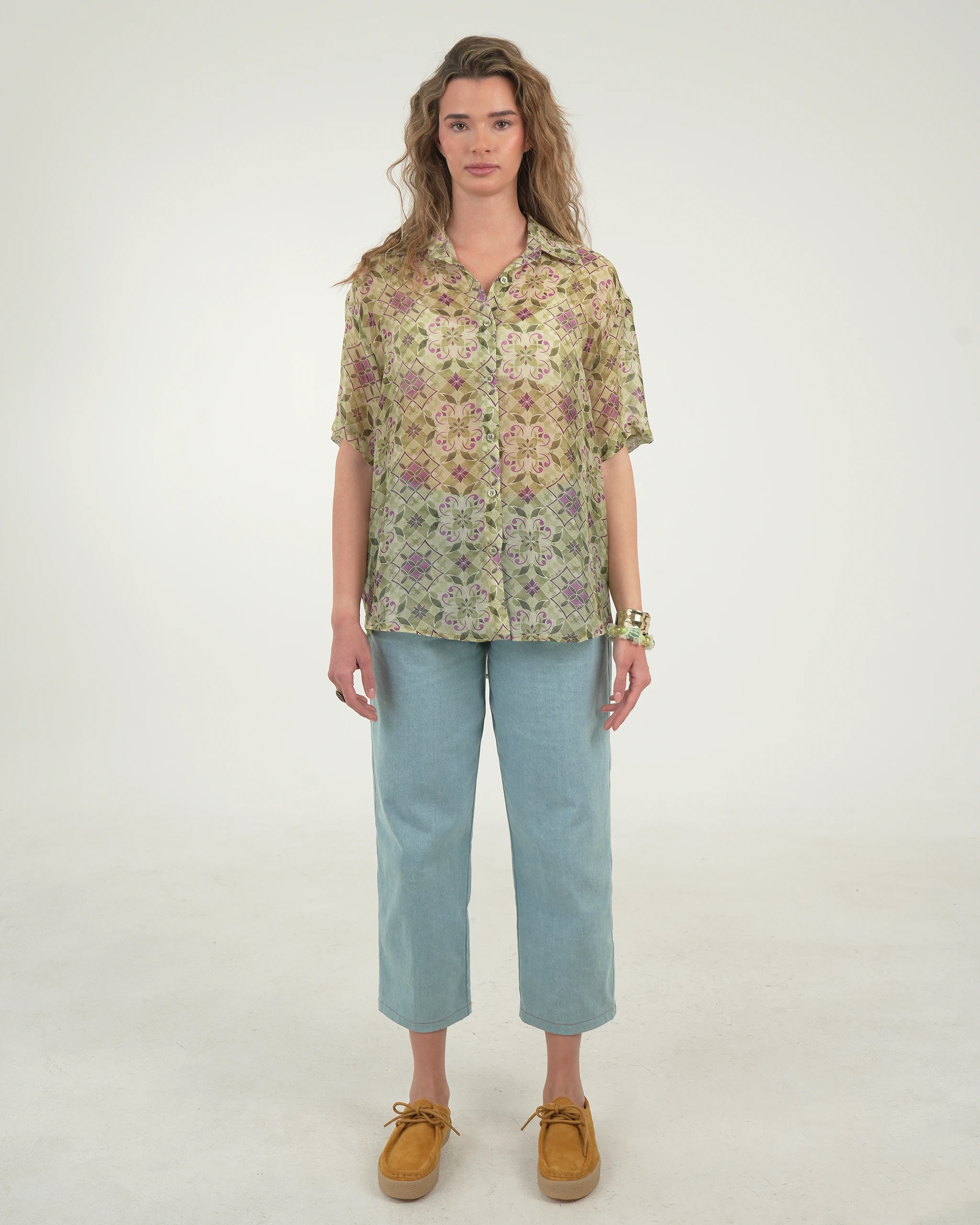 Το PISTACCHIO SHIRT είναι ένα χαλαρό κοντομάνικο πουκάμισο με ιδιαίτερο vintage print σε γήινες αποχρώσεις. Το ελαφρύ ύφασμα από 100% viscose προσφέρει δροσερή και απαλή αίσθηση, ιδανική για καλοκαιρινές εμφανίσεις. Φοριέται εύκολα μόνο του ή ανοιχτό πάνω από top για ένα effortless resort look.
