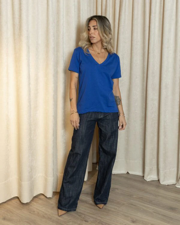 Ένα statement T-shirt σε έντονο electric blue. Δυναμικό, καθαρό, ζωντανό—σχεδιασμένο για να δίνει ενέργεια στο κάθε σου look.