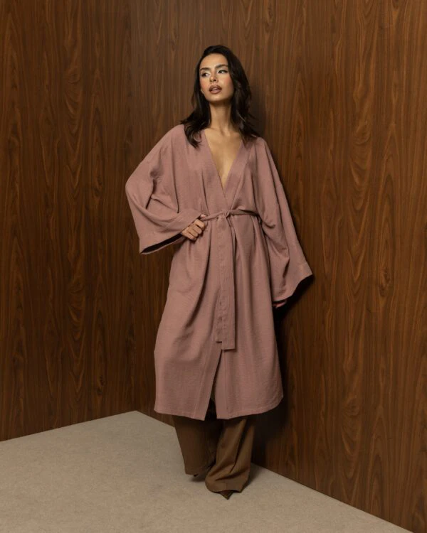 WHISPERED BLUSH KIMONO – Μακρύ κιμονό με ζώνη σε dusty rose απόχρωση