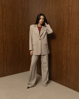 Το Calm Power Blazer εκφράζει τη δύναμη που δεν χρειάζεται να φωνάξει. Σχεδιασμένο σε greige απόχρωση με minimal structured γραμμή,