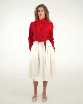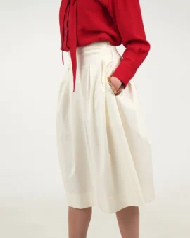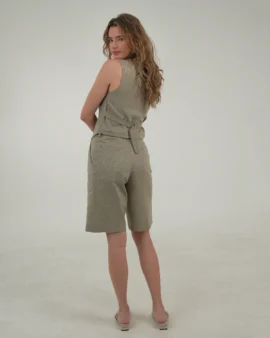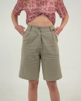 Tailored bermuda σε απόχρωση argilla, από βαμβάκι και λινό, με καθαρή γραμμή και λάστιχο στη μέση για άνετη εφαρμογή.